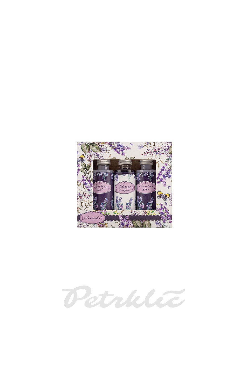 Dárkový balíček kosmetiky levandule obsahuje levandulový sprchový gel 50 ml, vlasový šampon 50 ml a pěnu do koupele 50 ml. Levandulová kosmetická sada je krásný dárek pro ženu, kamarádku nebo kolegyni v práci.