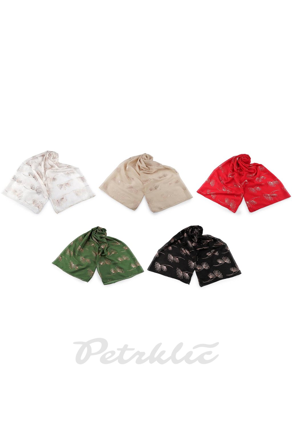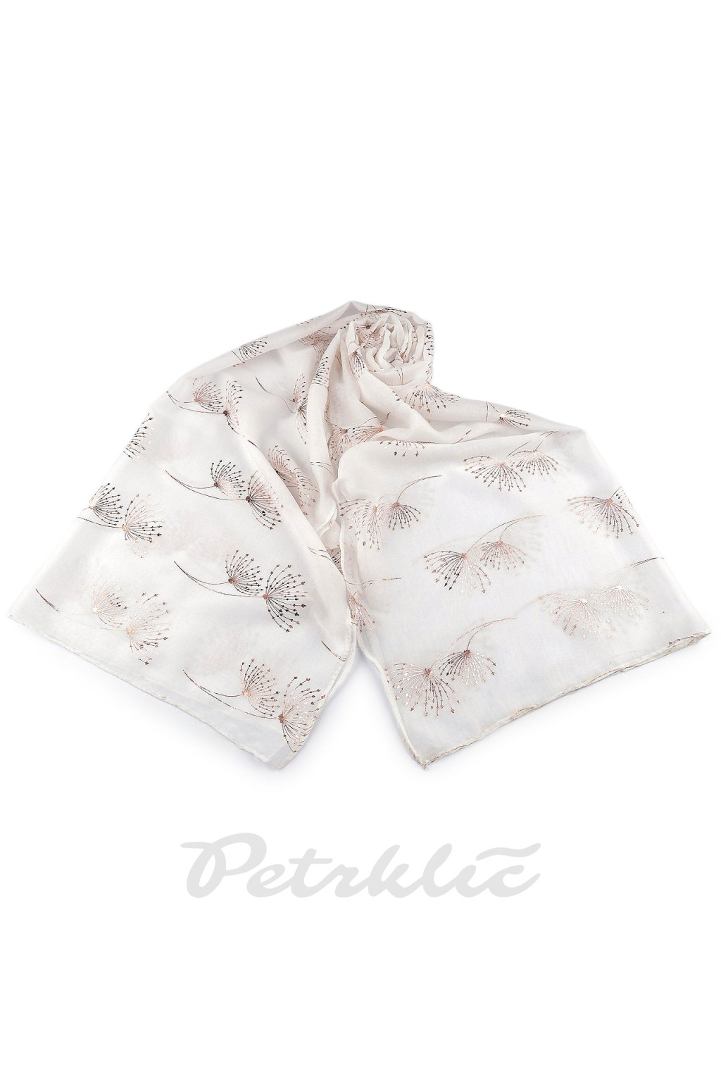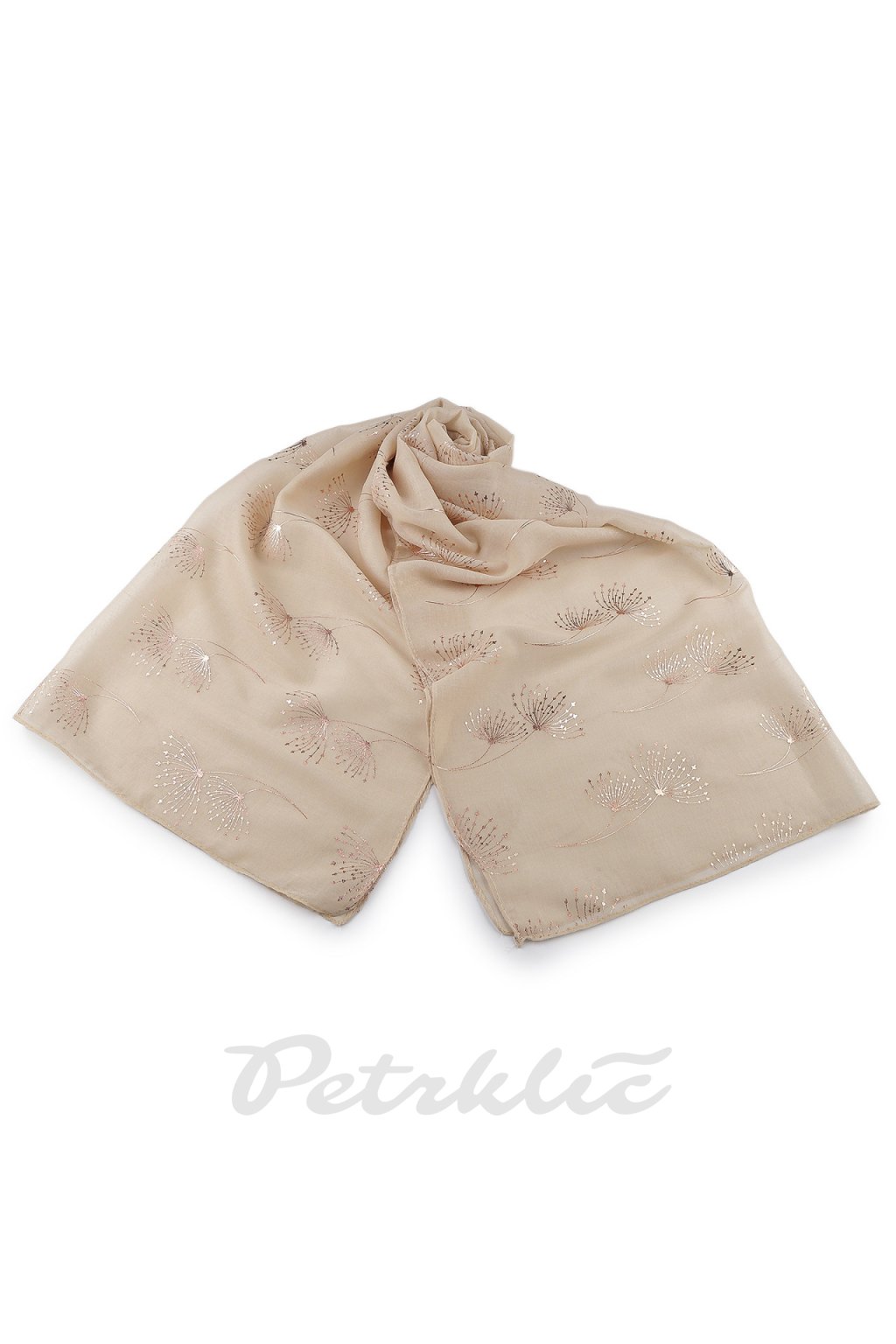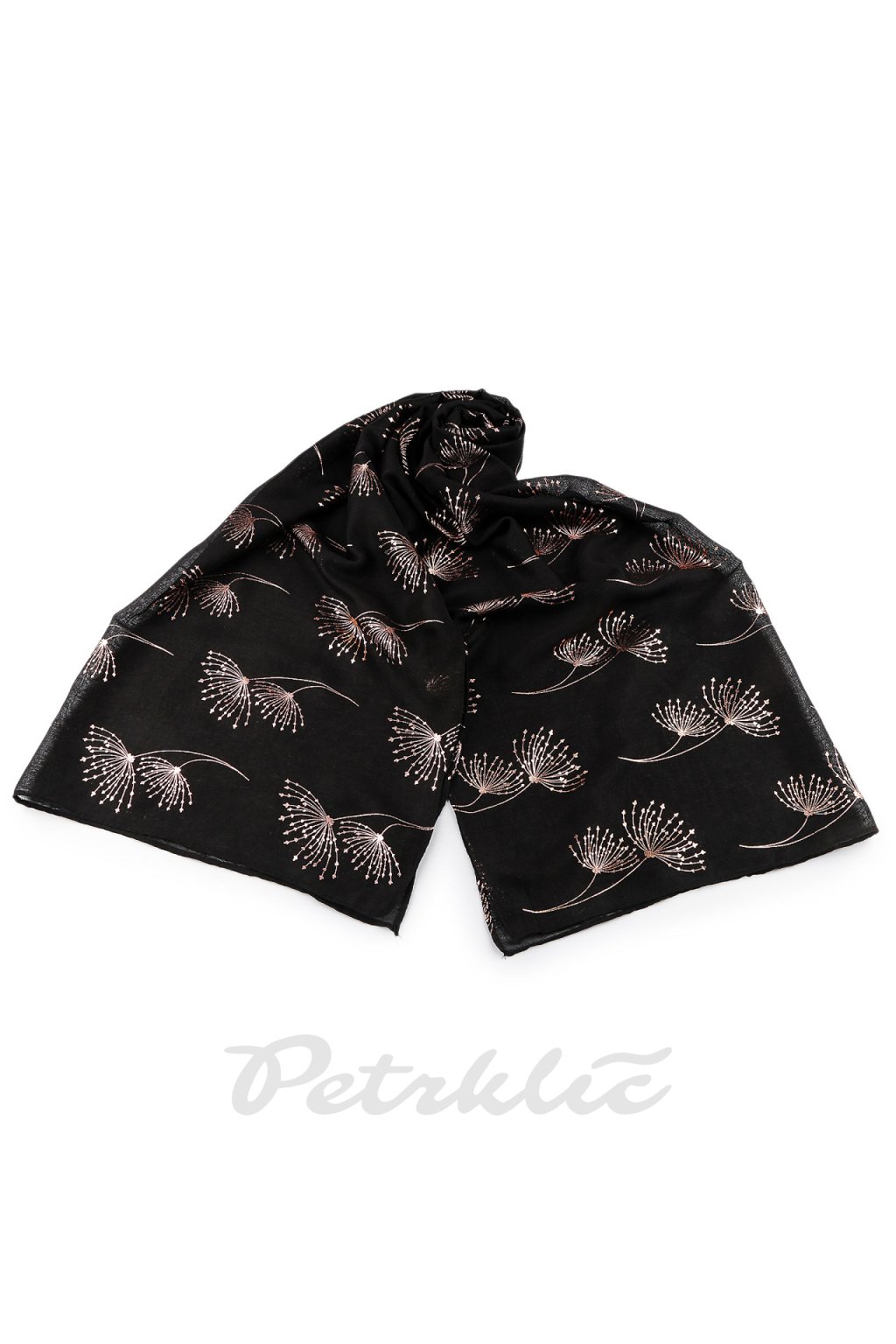 Šátek s metalickým potiskem větviček je velice příjemný na dotek, je vzdušný a lehký. Bude elegantním doplňkem pro každou příležitost, potisk má barvu růžového zlata. Doladí váš outfit, ať už si vezmete sako, halenku, svetřík či šaty. Hodí se k formálním i neformálním outfitům, můžete ho snadno kombinovat s vaším šatníkem.