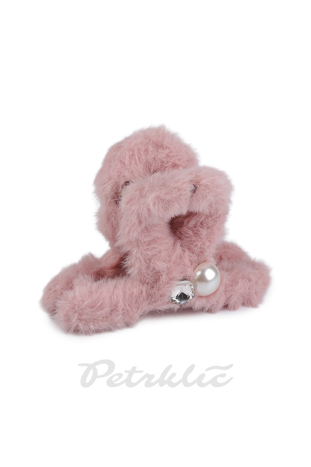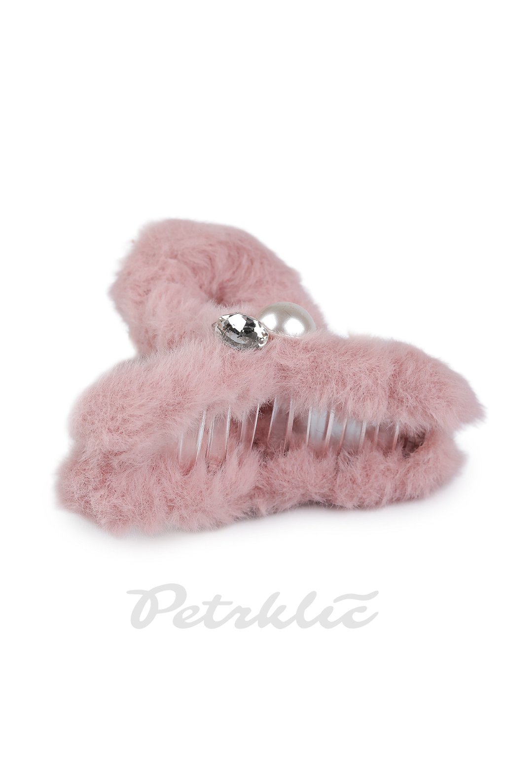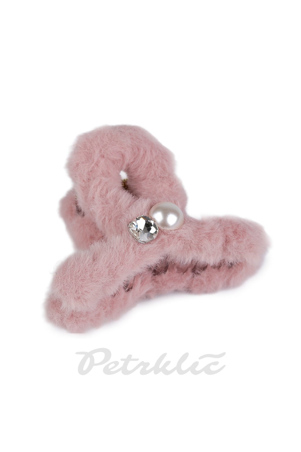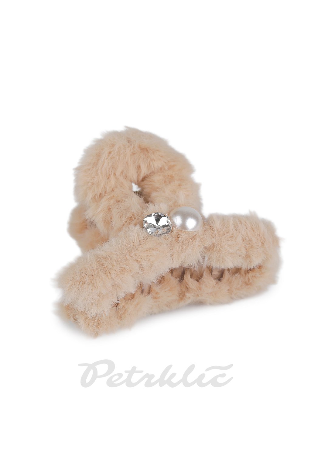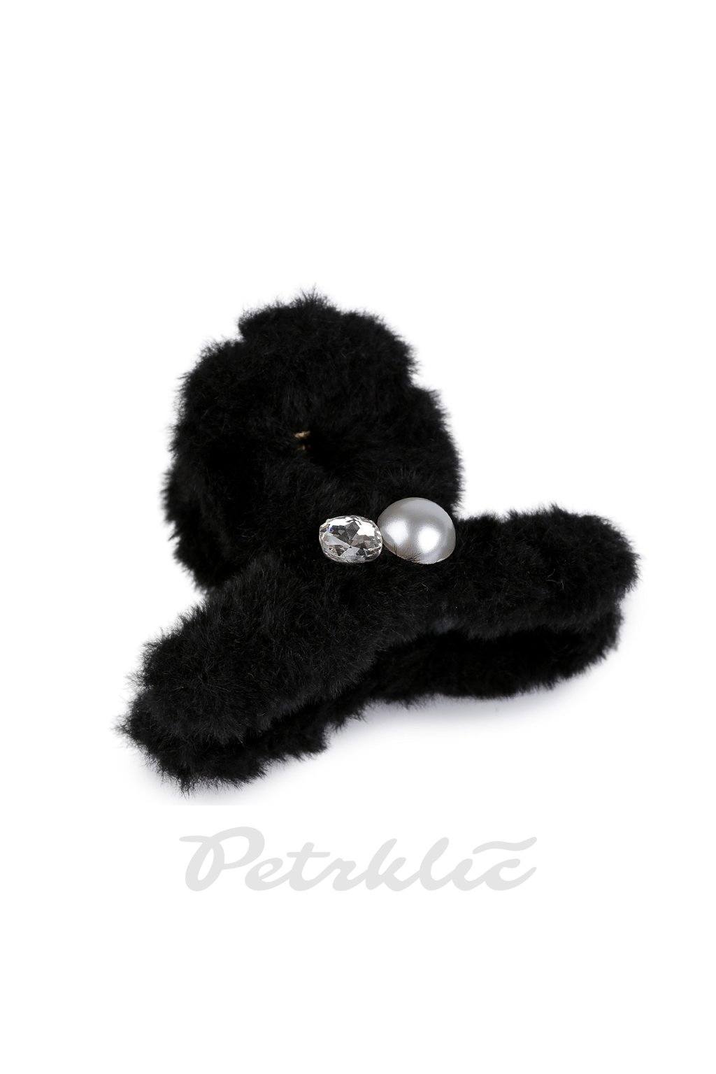 Skřipec do vlasů kožešinový s perlou a broušeným kamenem L370584