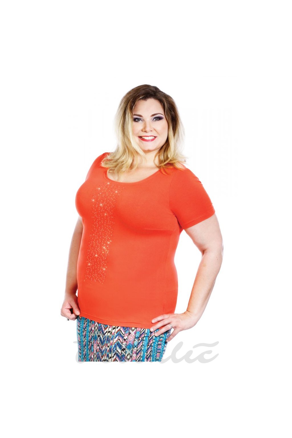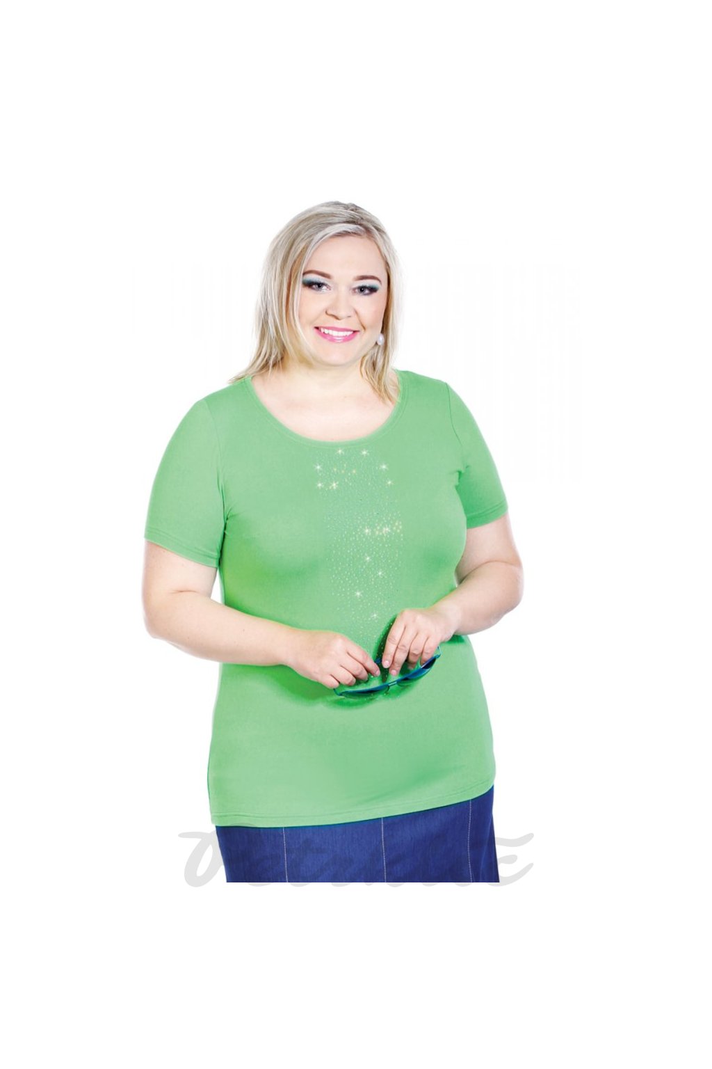 Příjemná, pružná, viskózová halenka. Na předním díle decentně zdobena kamínky v tónu halenky.