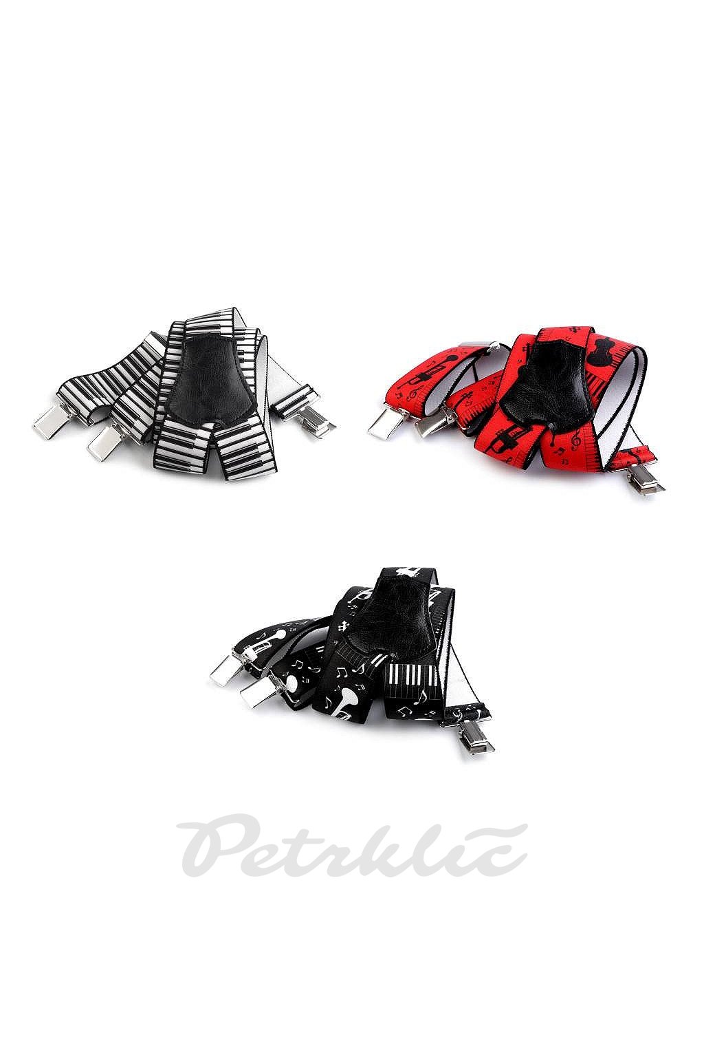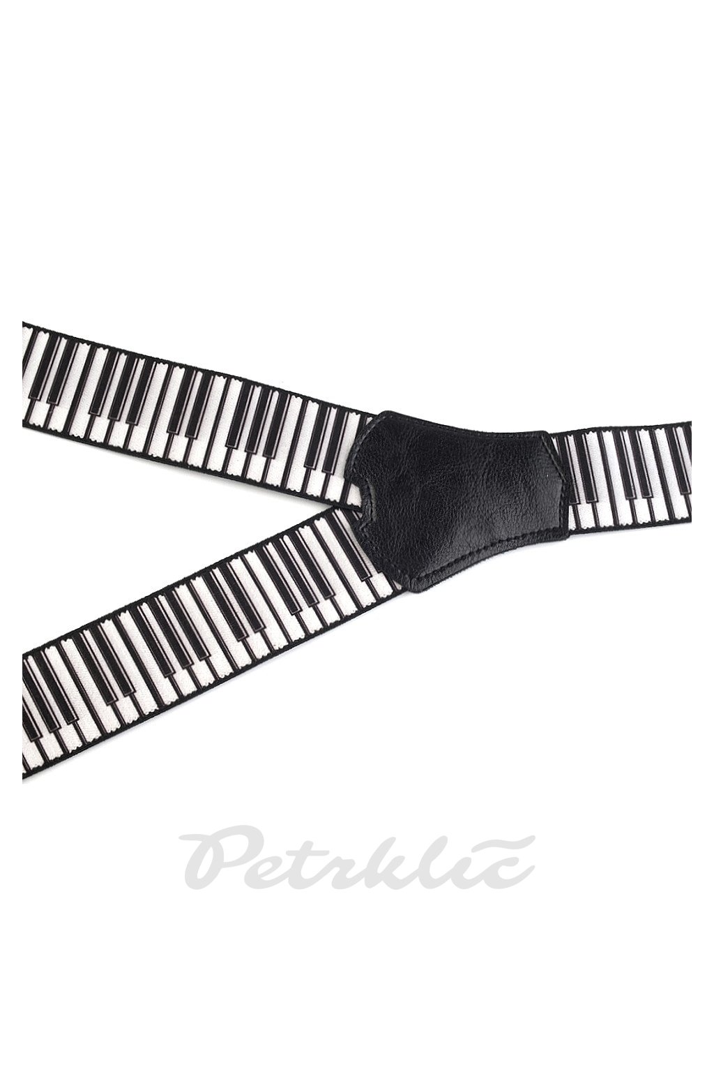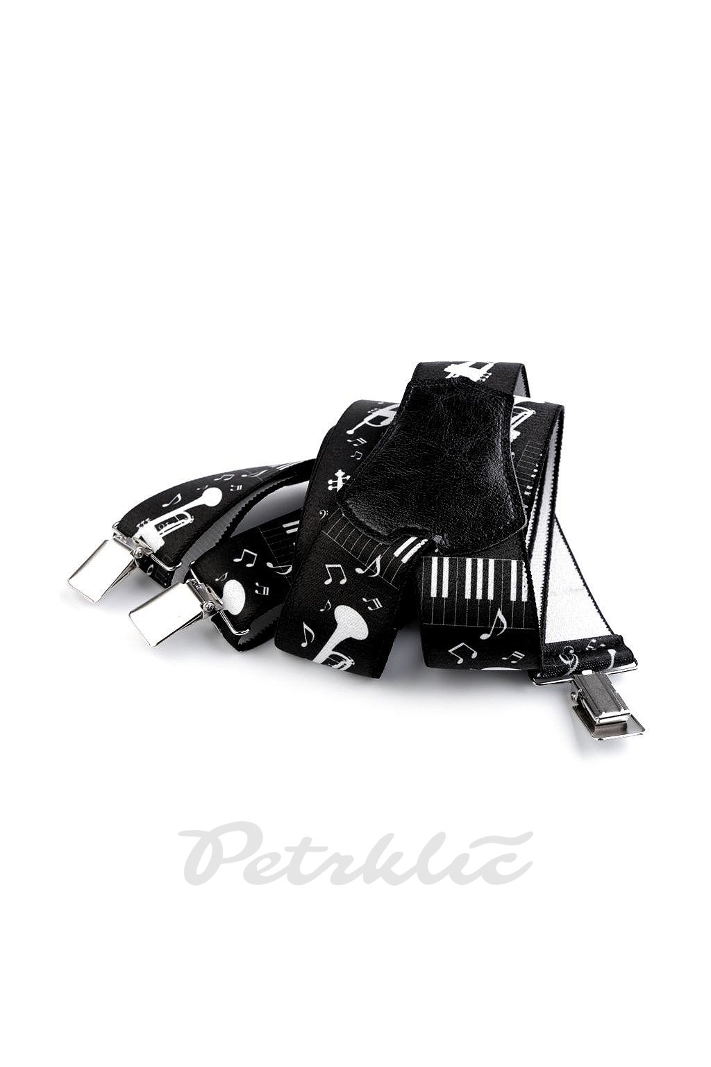 Vtipné kšandy s hudebními motivy potěší každého příznivce populární i vážné hudby. Pokud nejste milovníci pásků, „kšandy“ jsou pro vás ideálním doplňkem, který se opět vrací na výsluní. Jsou kvalitní české výroby, elastický materiál umožňuje pohodlné nošení. Zadní vsadka z eko kůže jim dodává stylový vzhled. Ke kalhotám se upevňují na tři žabky - dvě vpředu a jednu vzadu.