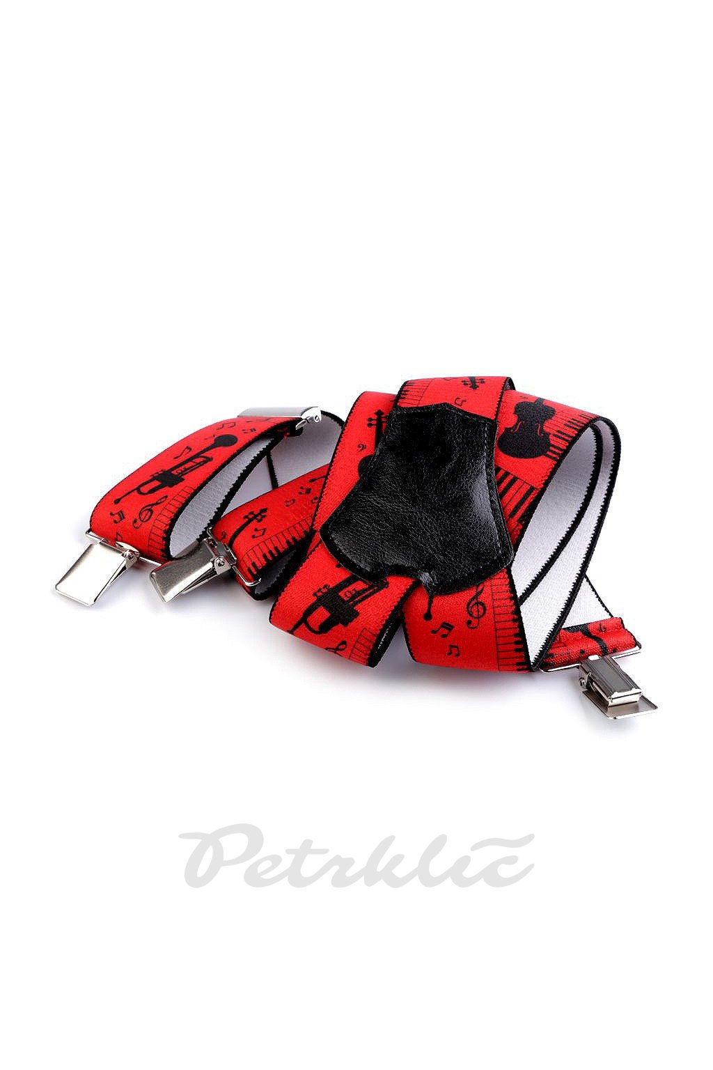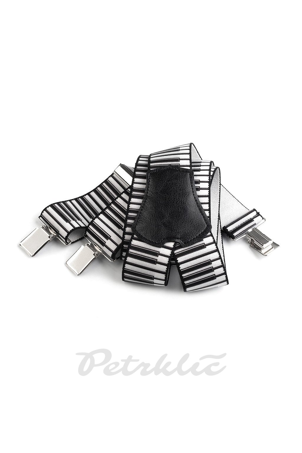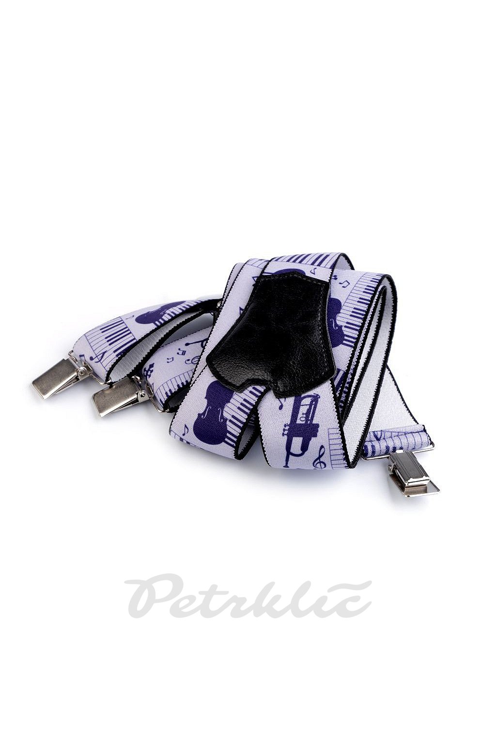 Vtipné kšandy s hudebními motivy potěší každého příznivce populární i vážné hudby. Pokud nejste milovníci pásků, „kšandy“ jsou pro vás ideálním doplňkem, který se opět vrací na výsluní. Jsou kvalitní české výroby, elastický materiál umožňuje pohodlné nošení. Zadní vsadka z eko kůže jim dodává stylový vzhled. Ke kalhotám se upevňují na tři žabky - dvě vpředu a jednu vzadu.