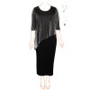 Společenské šaty s přeloženým živůtkem, středovým pásem a zavazující kolovou sukní. Volba délky rukávů a také délky šatů.
