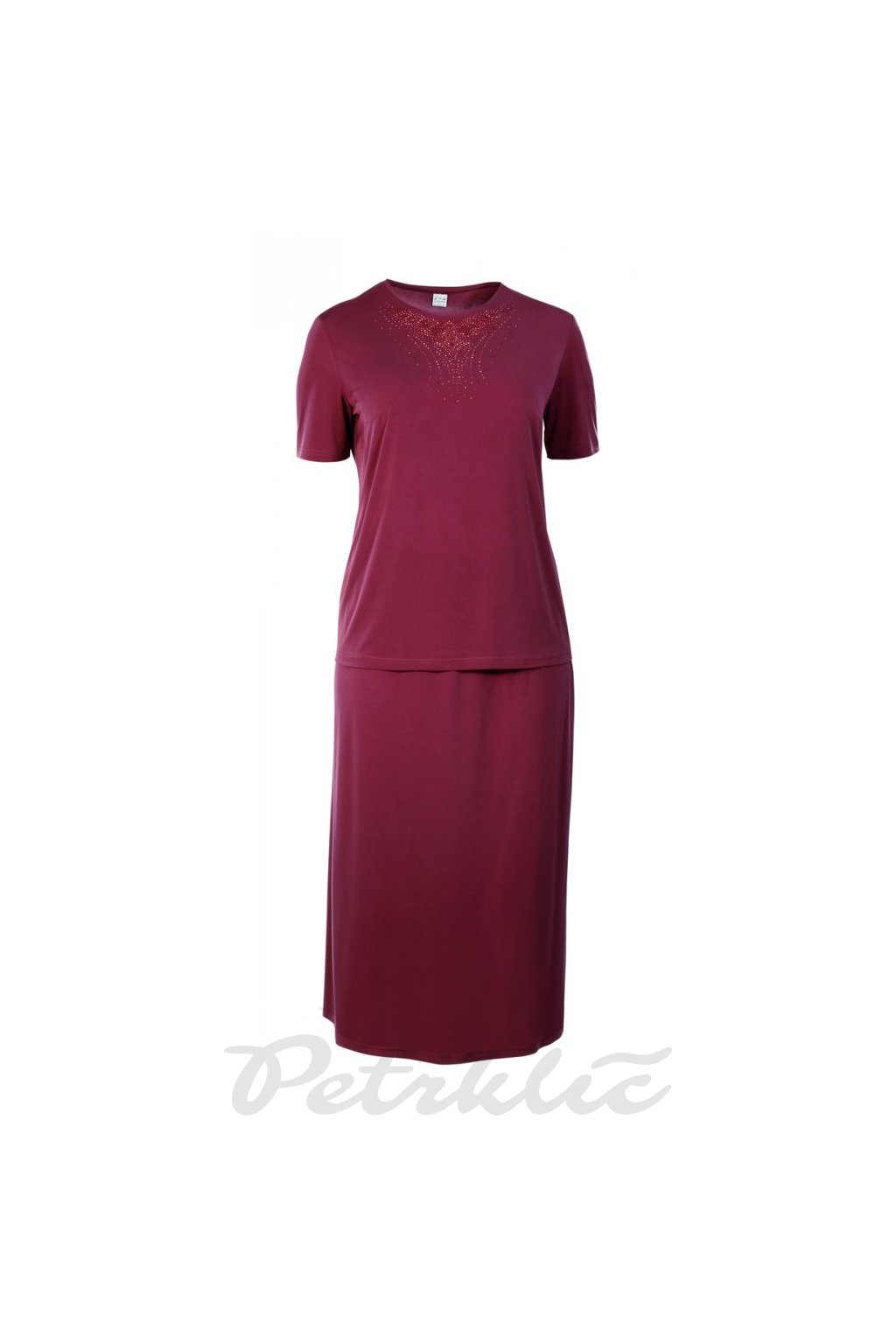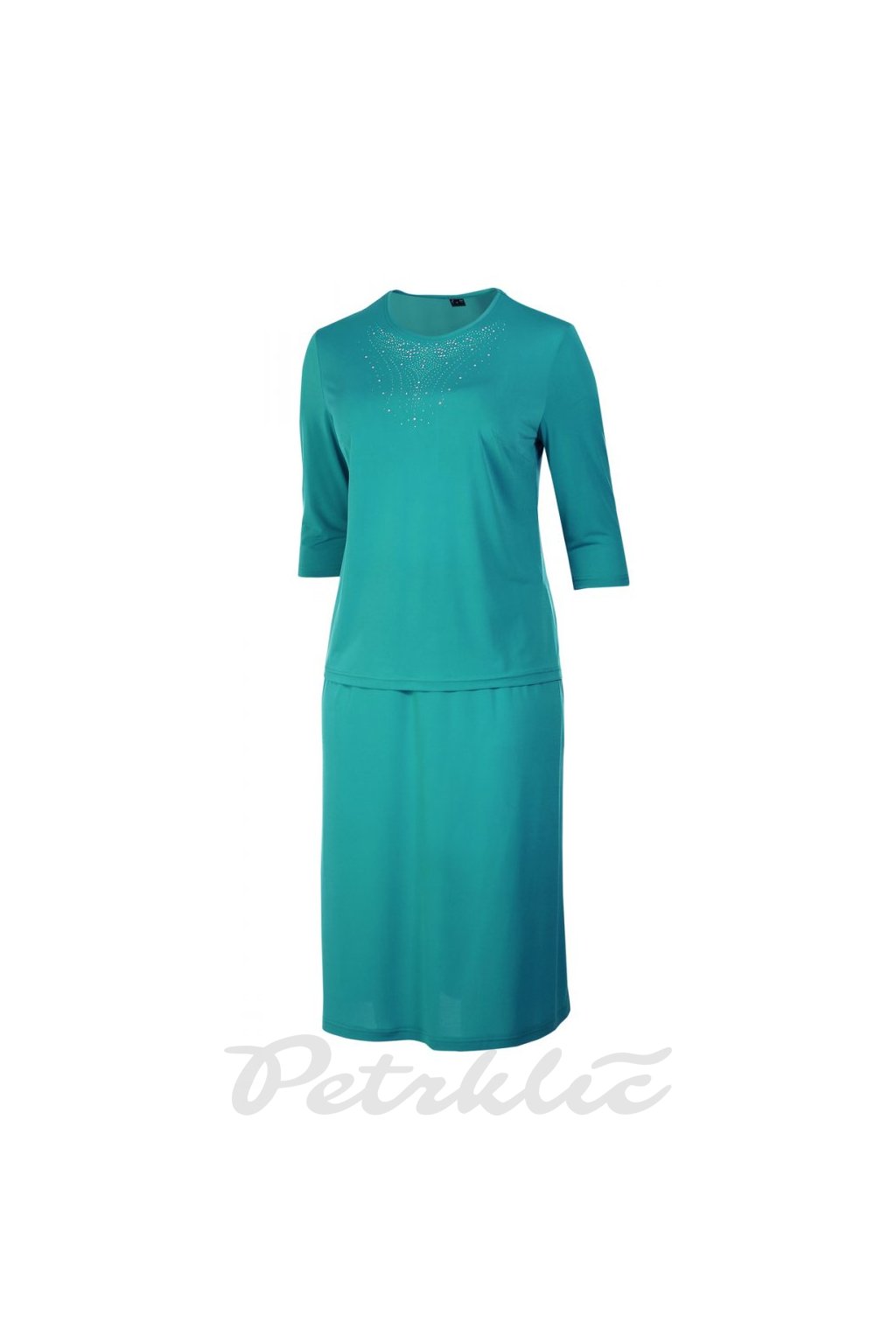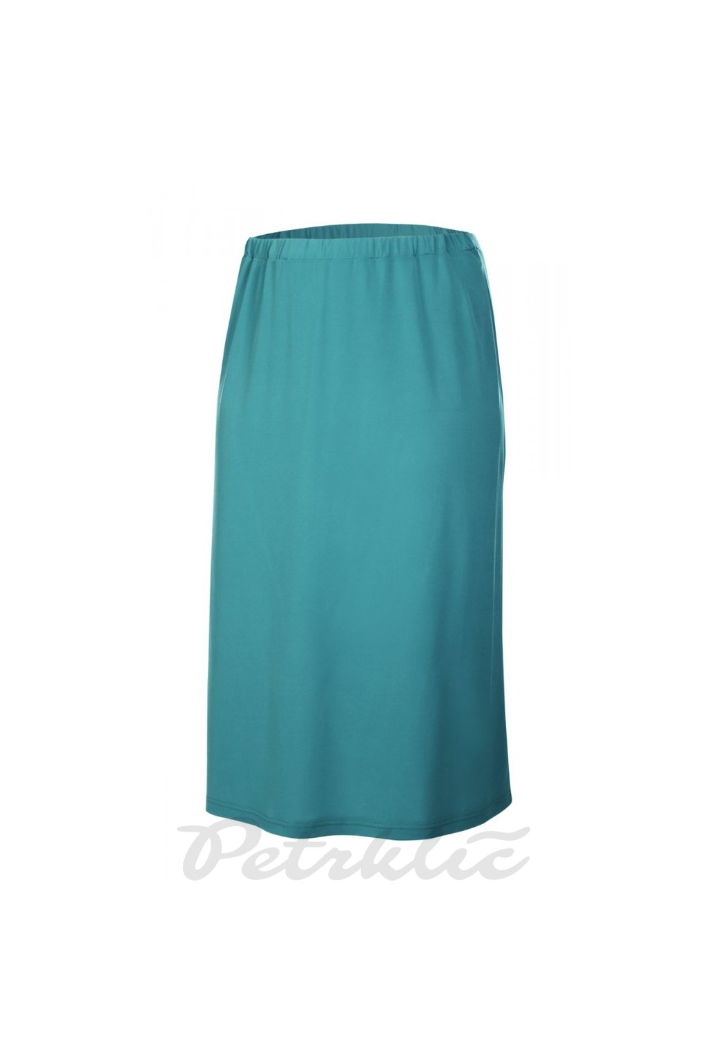 Splývavá, lehká sukně z pružného, jemně broušeného materiálu. V pase do pohodlné gumy. Od boků mírně rozšířená.