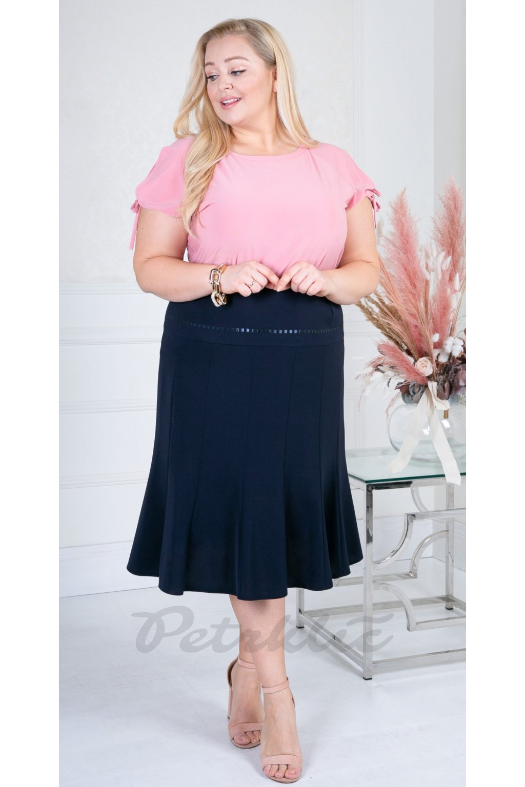 Tato sukně je skvělá volba pro každou ženu, která chce vypadat elegantně. Je z příjemného hladkého materiálu, doplněna lesklou saténovou stuhou. Zadní díl je hladký. Zapínání vzadu na krytý zip a knoflík. Sukně je s podšívkou a je ušita z pevnějšího, nepružného materiálu. Doporučujeme změřit si sukni, kterou již máte v šatníku a podle těchto rozměrů vybrat velikost z tabulky.