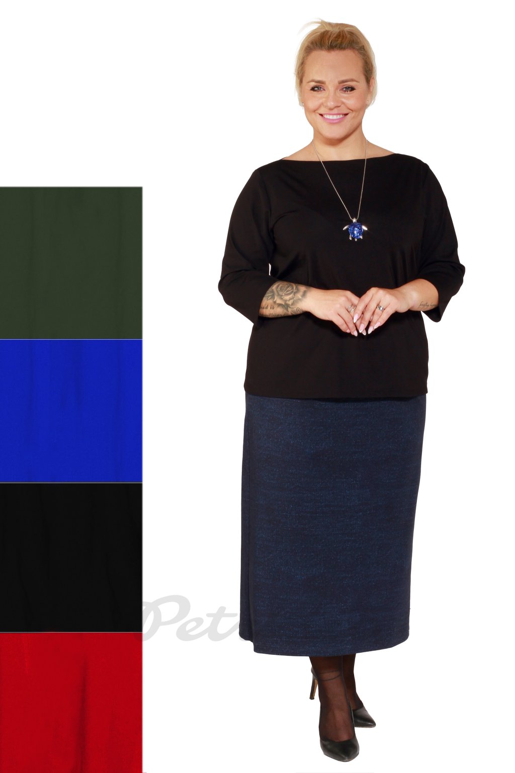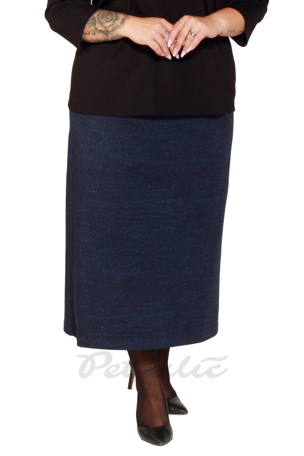 Rovně střižená sukně z bavlněného úpletu. V předním díle sportovně řešené kapsy, zadní díl hladký s malým středovým rozparkem. Do kombinace jde hezky se vším černým ...