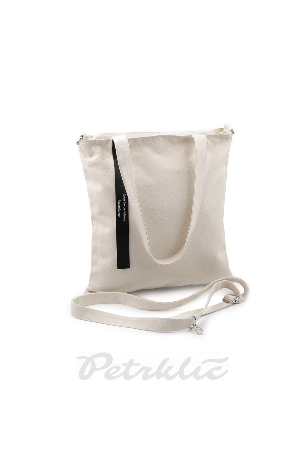 Bavlněná taška je praktická, je trendem dnešní doby. Je velice kvalitní, z hrubého plátna. Na přední straně je ozdoba v podobě stuhy s nápisem Love the confidence that make-up. Taška se uzavírá se na zip. Uvnitř má podšívku s kapsičkou na drobnosti na zip. Má ucha do ruky a odepínací popruh s plynulou regulací délky. Tašku si můžete dozdobit podle vlastní fantazie a vtisknout jí tak jedinečnou tvář. Je vhodná k malování barvami na textil, potisku, lze na ni vyšívat.