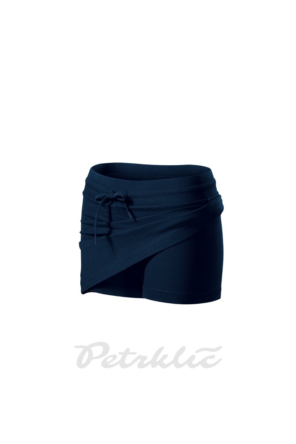 2 v 1 - sukně a všité kraťasy, strečový materiál udržující stálost tvaru, ideální pro sport a pohybové aktivity, krátký střih ve tvaru "A", široký pasový límec s pruženkou, na stažení šňůrkou