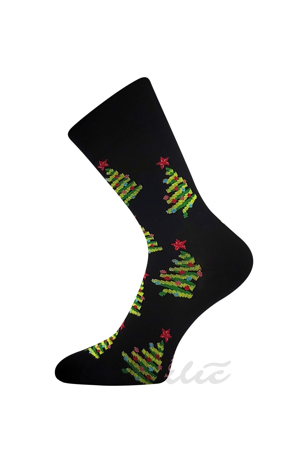 Vánoční ponožky s komfortním lemem, stromky, 80% ba, 15% pa, 5% lycra