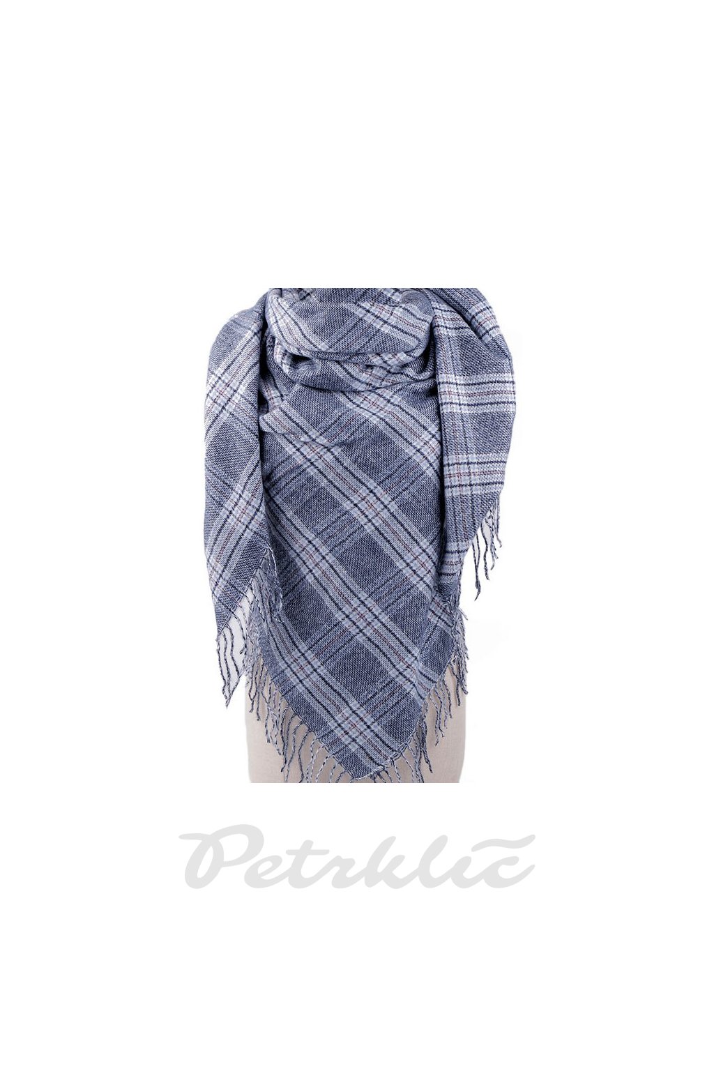 Velký teplý šátek s třásněmi 135 x 135 cm L9810488 modrá