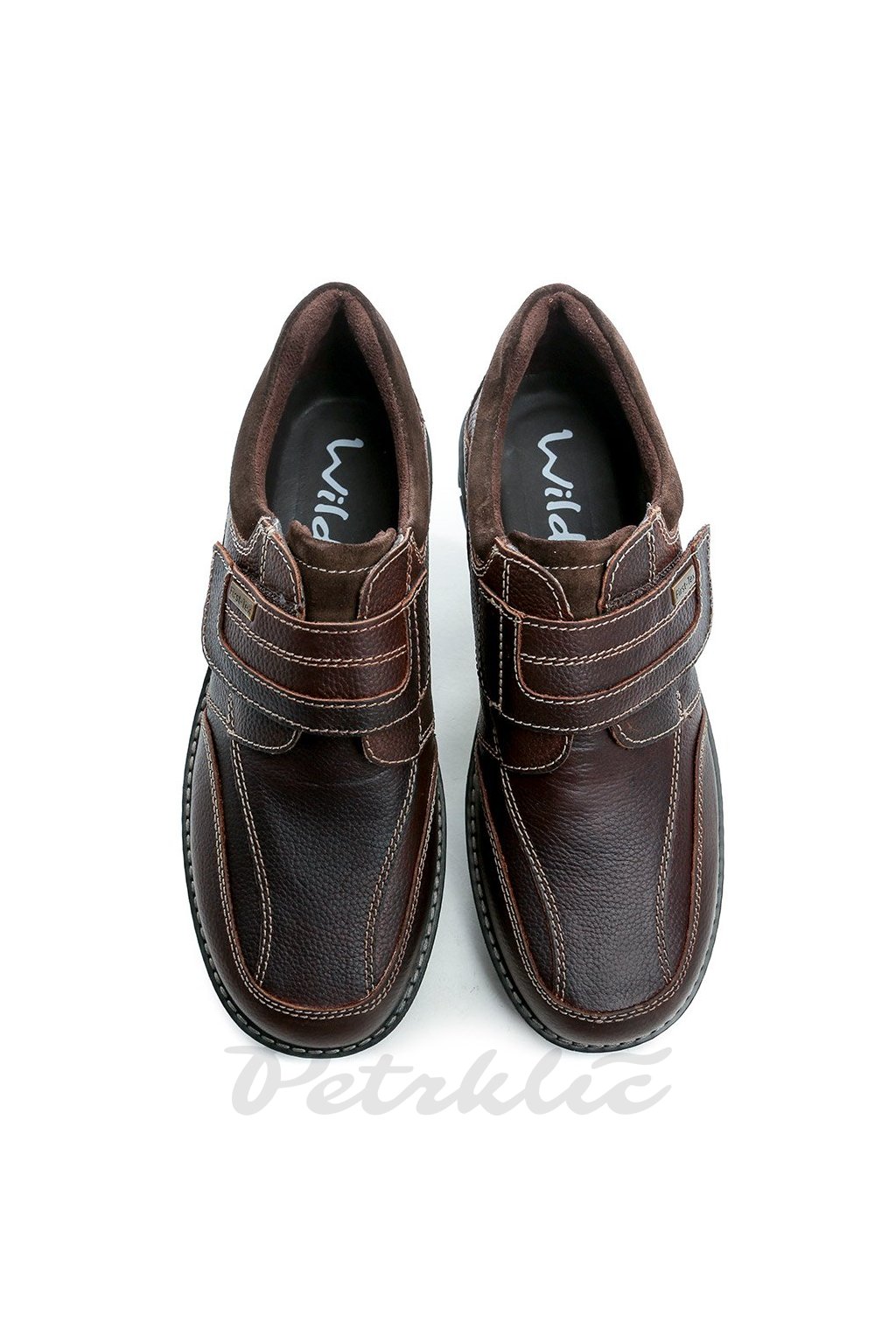 Pánská celoroční vycházková obuv se zapínáním na suchý zip. Wild - dokonalý komfort a špičkové zpracování. Obuv je vyrobená z pravé přírodní kůže. Vnitřní část obuvi je vybavená stélkou z pravé přírodní kůže a textilní podšívkou. First-TEX - voděodolná membrána Váha jednoho páru: 888 g  Pánská polobotky Wild.