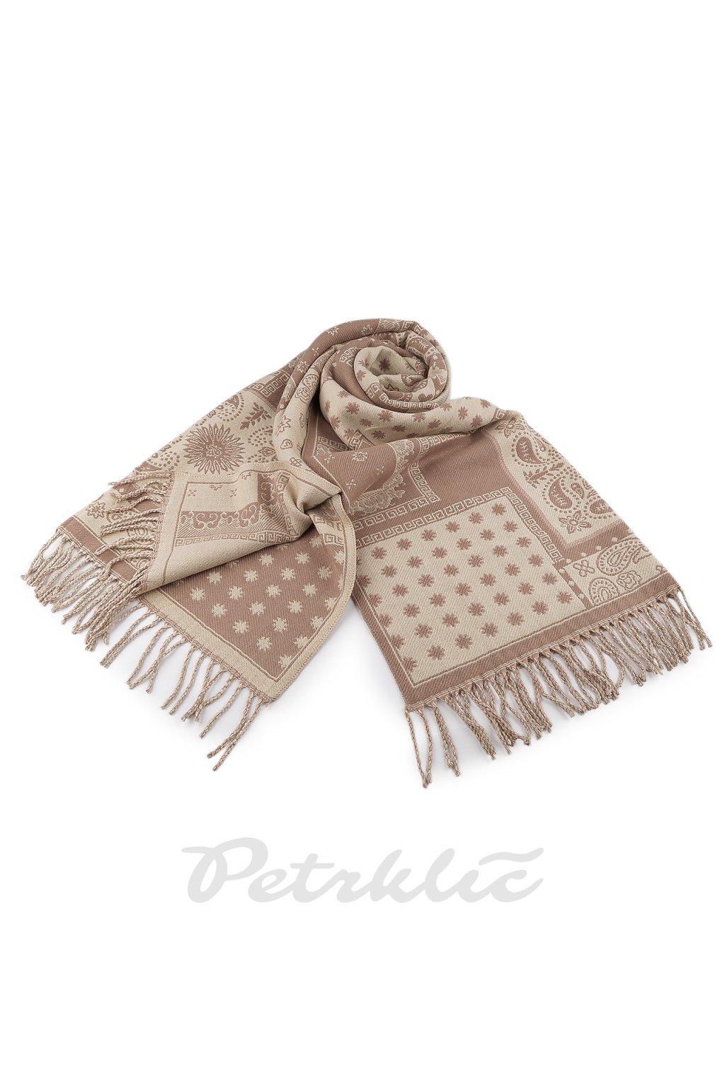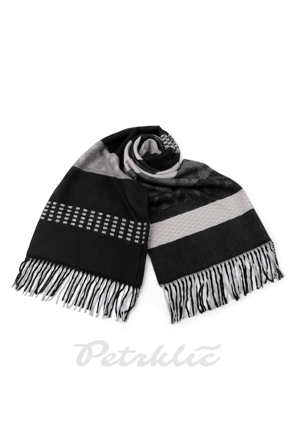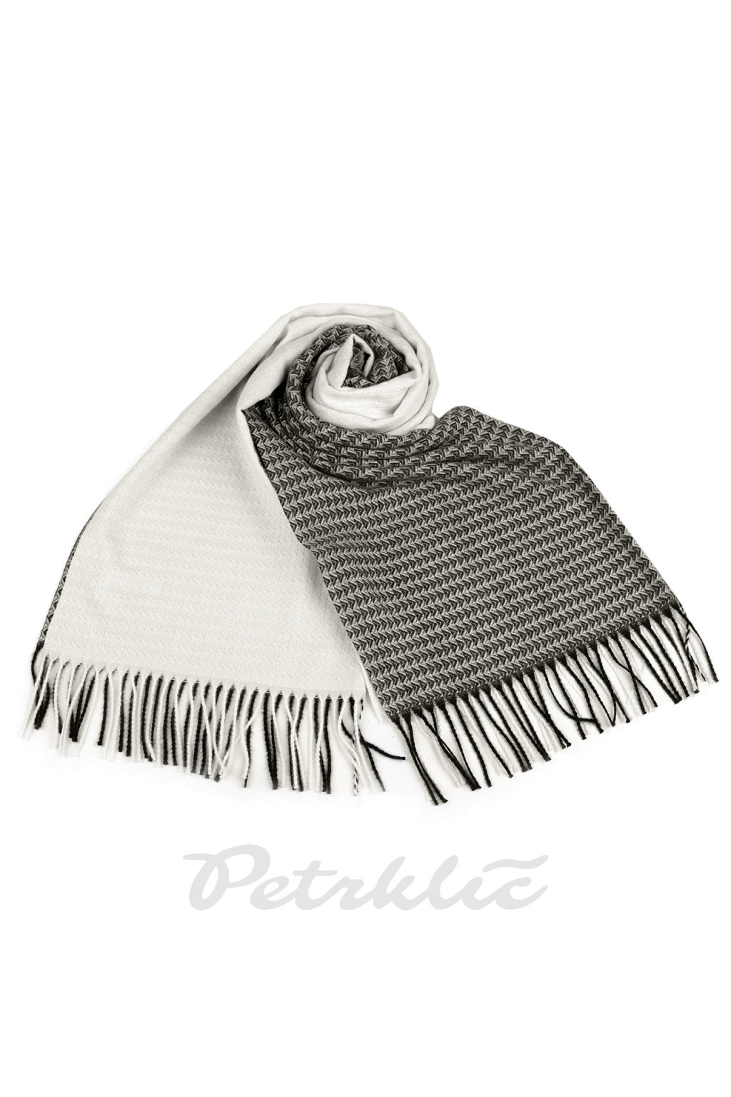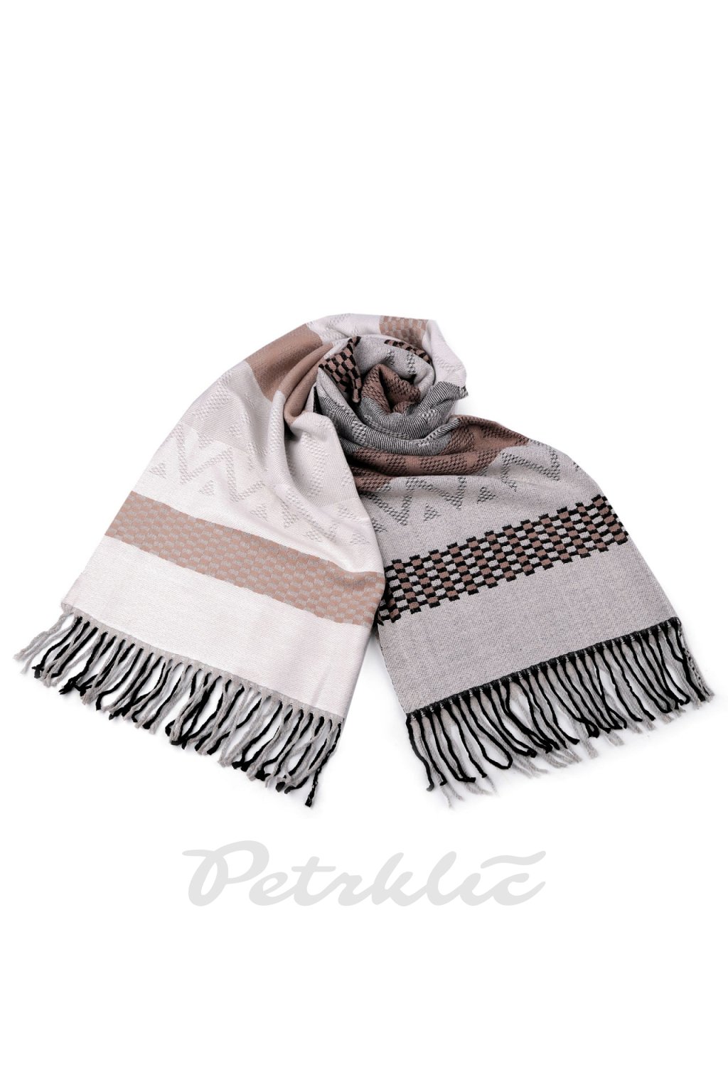 Oboustranná vzorovaná šála vás perfektně zahřeje v sychravých dnech. Je vyrobená z příjemně měkkého a jemného materiálu. Na koncích je zakončená dlouhými třásněmi.