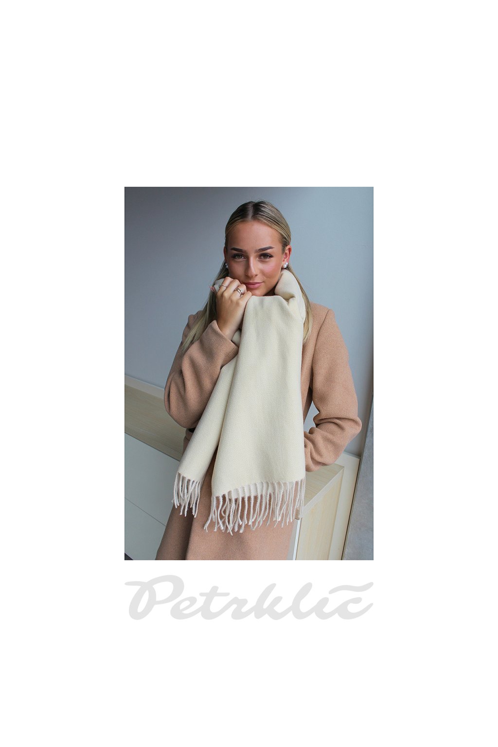 Velká jednobarevná šála vyšší gramáže je velice kvalitní, komfortně vás zahřeje v sychravých dnech. Zadní stranu má světlejší. Je vyrobená z materiálu příjemně hebkého na dotek. Hodí se ke kabátu, bundě i svetru. Na koncích je zakončená dlouhými třásněmi.